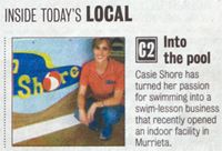 “I absolutely love swimming and I love to teach swimming,” said Shore, who has held learn-to-swim classes during the warmer months at her own backyard pool for the past five years. “Having an indoor place to teach swimming lessons all year long, rain or shine, was something I have wanted to do for a long time now.” Read the entire article here